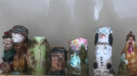 Collection de pichets zoomorphes et anthropomorphes, belles verreries art déco, mobilier, peintures et sculptures contemporaines, bronzes du XIXème.