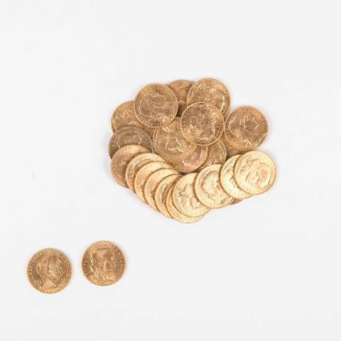 Ensemble de monnaies d'or anciennes et modernes ainsi que monnaie d'argent et médaille d'argent frappé par la monnaie de Paris